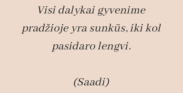• Kantrybės raumens „kačialinimas“, nes „visi dalykai gyvenime pradžioje yra sunkūs, iki kol pasidaro lengvi“ (Saadi).